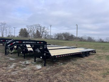 32' Iron Bull FLG Gooseneck Deckover Trailer Mega Ramps - (2) 10,000 lb Axles