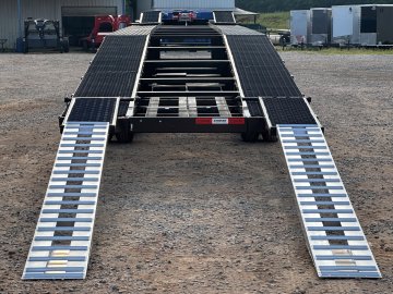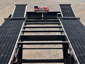 50' Low Profile Wedge (2) 12k Elec/Hyd Axles, Winch, 10' Aluminum Ramps, Spare