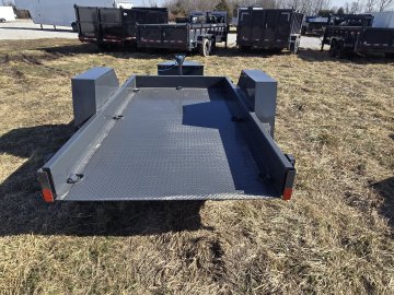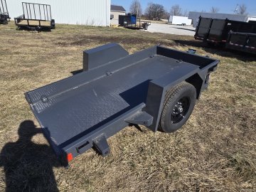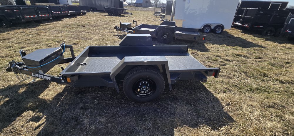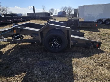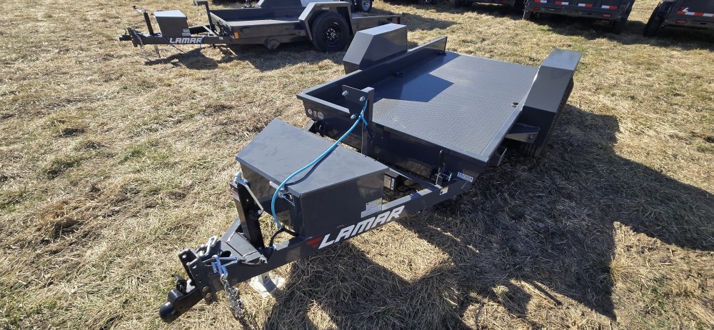 The Lamar Trailer Model SH591017 is part of the Lamar’s scissor/tilt equipment hauler lineup, designed to make loading and unloading machinery easier without the need for separate ramps. In this configuration you’ll find a 59 inch wide by 10 foot long tilt deck built on a robust steel frame and featuring a full length gravity tilt system that lowers the deck to the ground for smooth, drive-on access. These trailers are at 7,000 lb GVWR(gross vehicle weight rating) with a single torsion EZ lube axle with electric brakes, giving you substantial hauling capacity around 5,500 lb. Standard features include heavy duty 7k drop-leg jack, adjustable coupler, multiple tiedown points and D-rings. And a power-coat finish with LED lighting and a weather-resistant harness–all intended to provide dependable performance for transporting compact equipment, lawn tractors, skid steer attachments, and similar loads behind a bumper-pull tow vehicle.