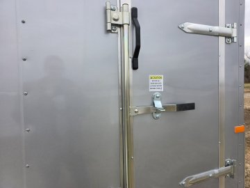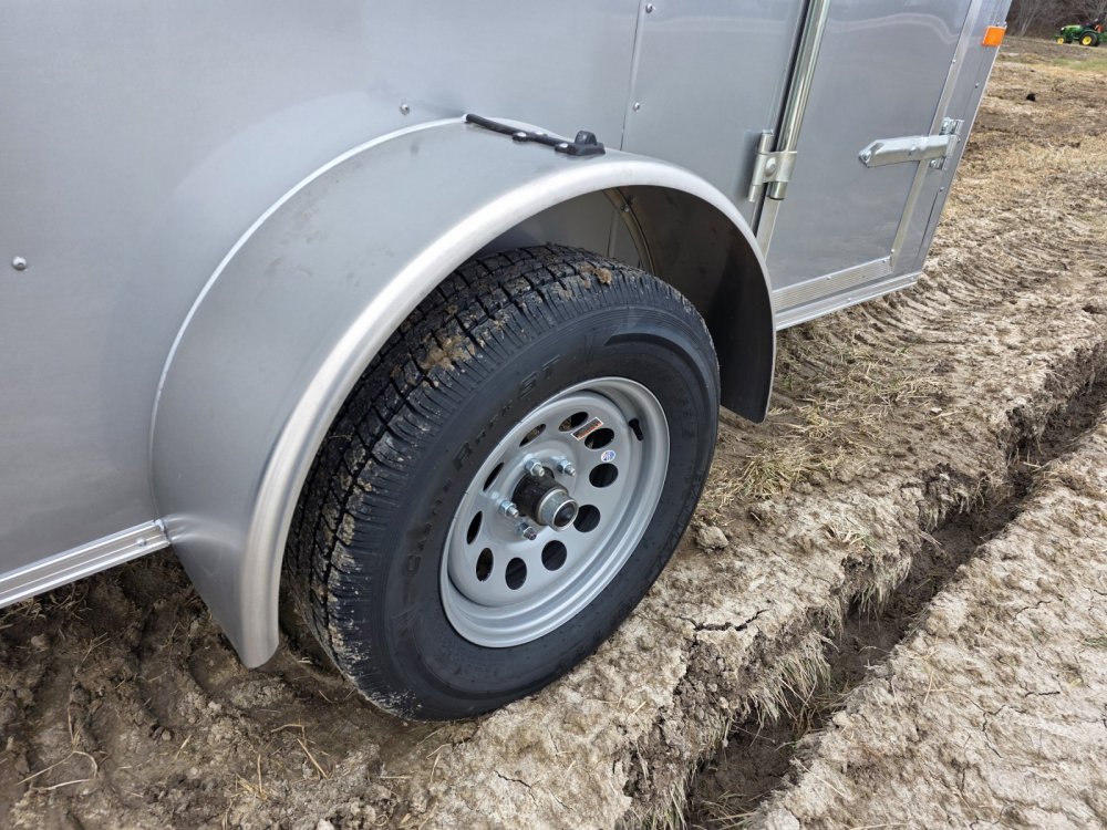 This trailer features a sturdy 3" steel tube main frame with 24" on-center roof bows and floor cross members, and 16" on sidewalls. It has a durable ¾" plywood floor and 3/8" plywood walls, along with a Therma Cool ceiling liner. Entry is convenient with a 24" side door and a 12-volt LED dome light. It rides on a 2990 lbs. drop leaf spring axle with silver mod wheels and aluminum fenders, plus E-Z Lube hubs. Other features include a 2" coupler, 24" stone guard, V-nose design, and LED lighting throughout. For securing cargo, you'll find 4 floor mount D-rings, and it connects with a flat 4 pigtail.