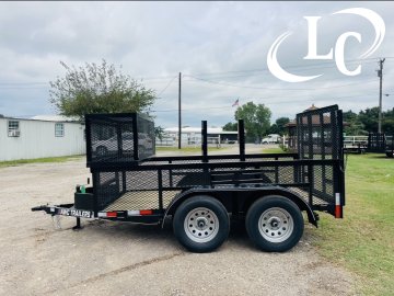 2" Bd Hitch, 2ft Expanded Metal (3/4 - #9), 3X2 Angle top, 4ft Ramp Gate (1- 1/2 - #9 Raised Expanded Metal), 7k Ram Jack, Blower Cage 2ft tall x 2ft long x 76" wide, Spare Mount, Treated Lumber, Trimmer Rack