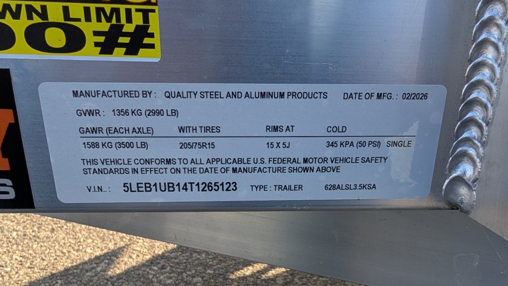 The Quality Steel and Aluminum 628ALSL3.5KSA is built for dependable hauling, whether you’re working on the job site, heading to the lake, or tackling weekend projects. Designed with durability and convenience in mind, this utility trailer offers a lightweight aluminum frame paired with rugged steel components for the perfect balance of strength and easy towing.