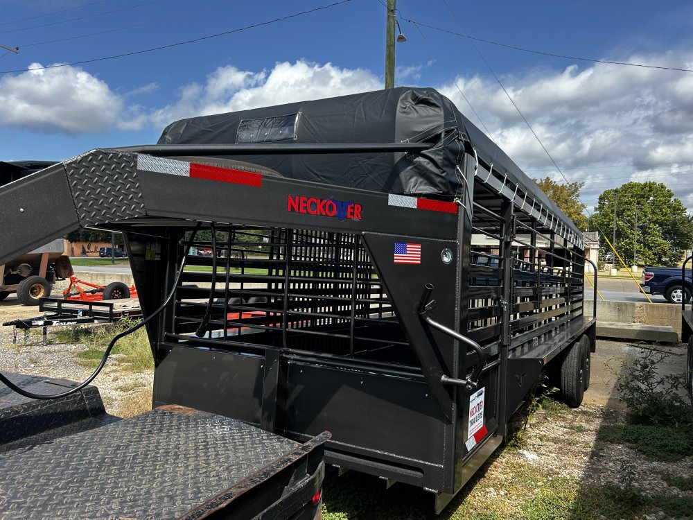 6.8x24 Neckover rubber floor, rec tubing , moveable cut, interior lights, rear light bar,torsion axles wash out fron Livestock