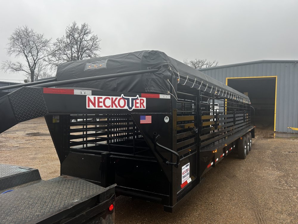 6.8x28 Neckover rubber floor, rec tubing , moveable cut, interior lights, rear light bar,torsion axles wash out fron Livestock