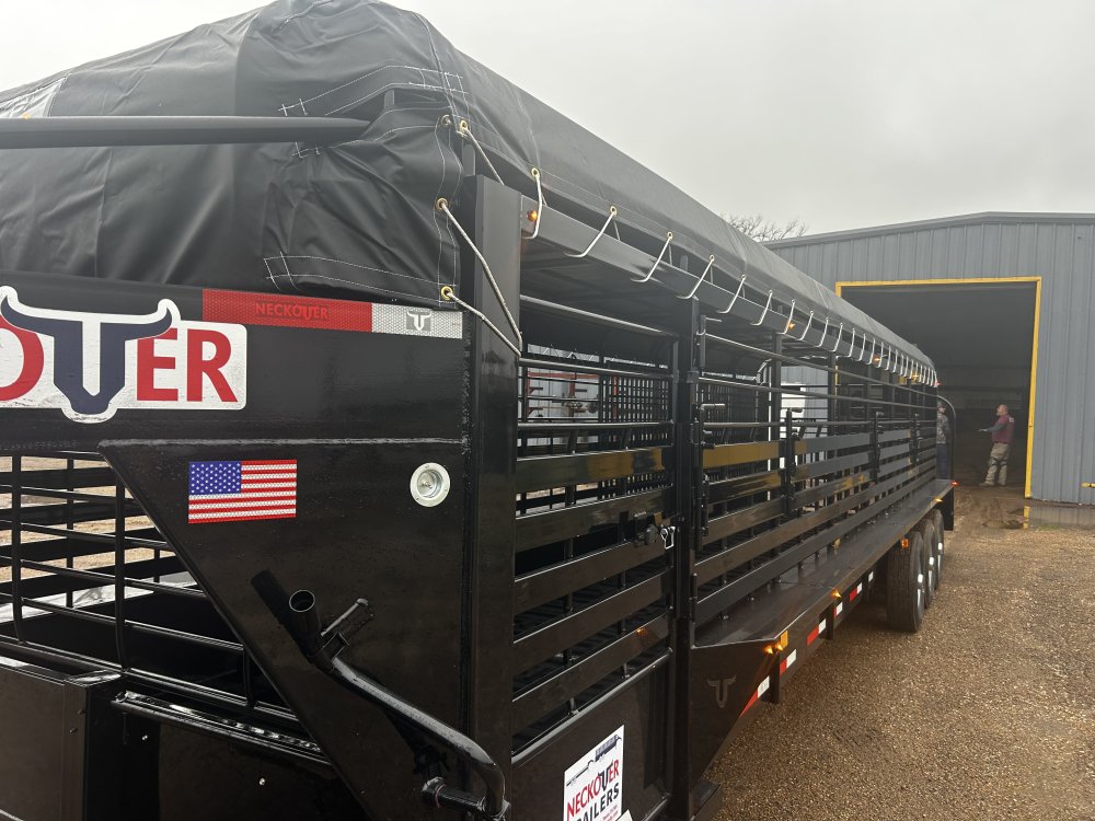 6.9x32 Neckover rubber floor, rec tubing , moveable cut, interior lights, rear light bar,torsion axles wash out fron Livestock