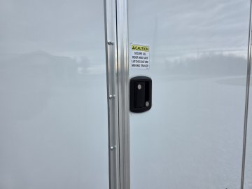 This heavy-duty enclosed trailer is built to last with a robust 3" steel tube main frame and 24" on-center spacing for the roof bows, and on floor cross members, 16” on sidewalls, ensuring superior structural integrity. It features a durable ¾" plywood floor and 3/8" plywood walls, plus a Therma Cool ceiling liner for climate management. Access is easy via a 36" side door with a flush lock and an ATP covered stepwell, illuminated by a 12-volt LED dome light. For secure transport, it includes electric brakes on both axles, a 7-way Bargman plug, and E-Z Lube hubs on its silver mod wheels. The V-nose design, 24" stone guard, and aluminum fenders add to its functionality and protection. Inside, you'll find 4 floor mount D-rings to secure your cargo, and a no-show beavertail for smooth loading. All lighting is LED for reliability.