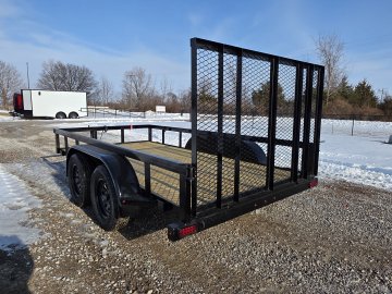 Get the job done with confidence using our Caliber 6x12 Tandem Axle Utility Trailer, finished in a sleek black powder coat for added durability and style. Built for heavy-duty hauling, this trailer is equipped with two 3,500 lb brake axles, giving you enhanced stopping power and peace of mind when carrying substantial loads.