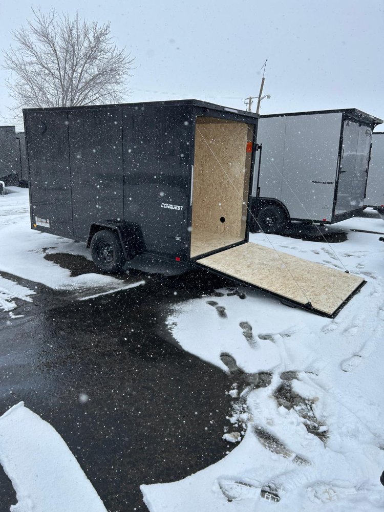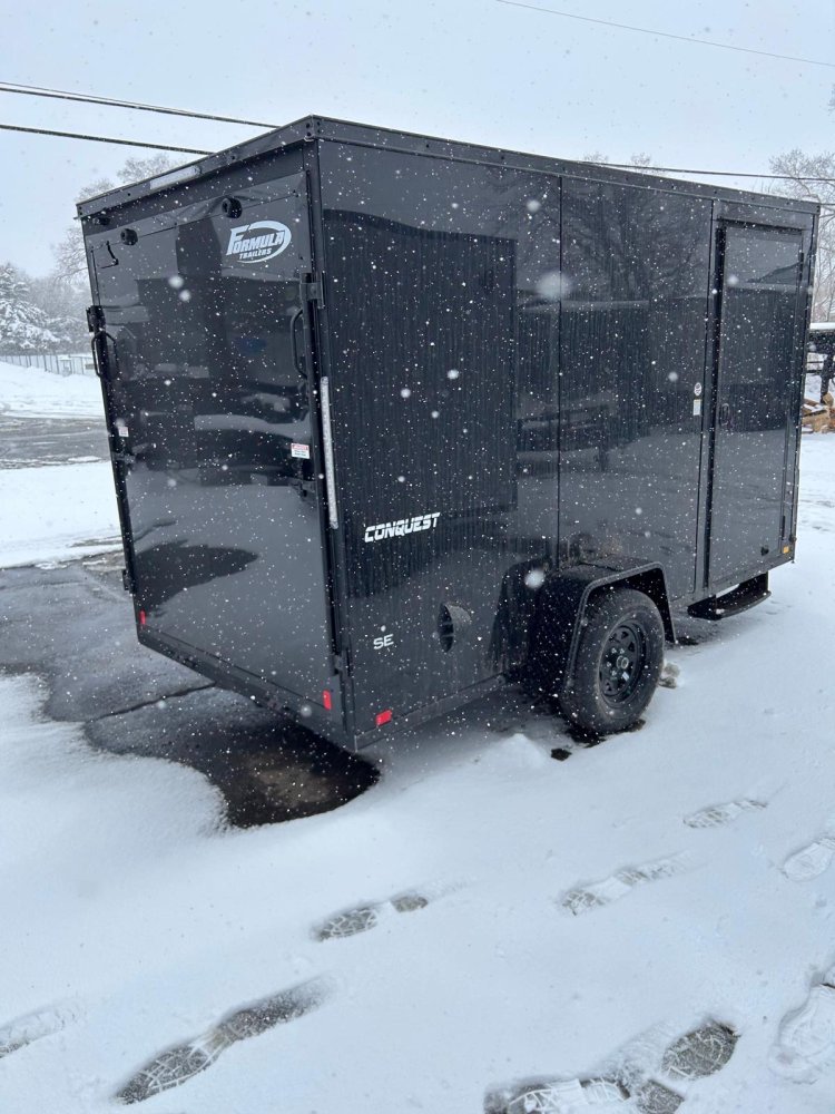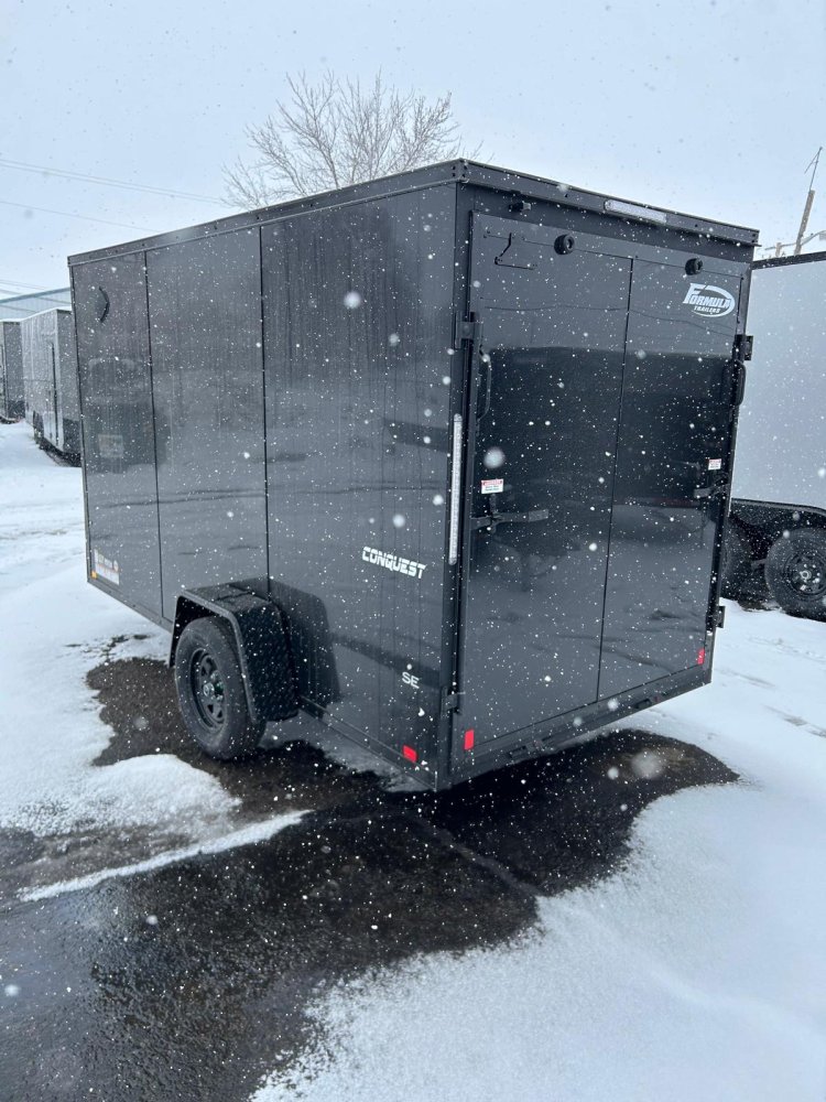 The 6x12 Formula Conquest SE enclosed cargo trailer is a compact, lightweight hauler designed for everyday hauling across Carson City and Northern Nevada. With its aerodynamic sloped V-nose design, this trailer tows smoother, saves fuel, and stays stable on highways and mountain roads. Perfect for homeowners, small businesses, and weekend hauling needs.