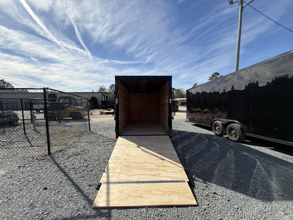 This heavy-duty enclosed trailer is built to last with a robust 3" steel tube main frame and 24" on-center spacing for the roof bows, and on floor cross members, 16” on sidewalls, ensuring superior structural integrity. It features a durable ¾" plywood floor and 3/8" plywood walls, plus a Therma Cool ceiling liner for climate management. Access is easy via a 36" side door with a flush lock and an ATP covered stepwell, illuminated by a 12-volt LED dome light. For secure transport, it includes electric brakes on both axles, a 7-way Bargman plug, and E-Z Lube hubs on its silver mod wheels. The V-nose design, 24" stone guard, and aluminum fenders add to its functionality and protection. Inside, you'll find 4 floor mount D-rings to secure your cargo, and a no-show beavertail for smooth loading. All lighting is LED for reliability.