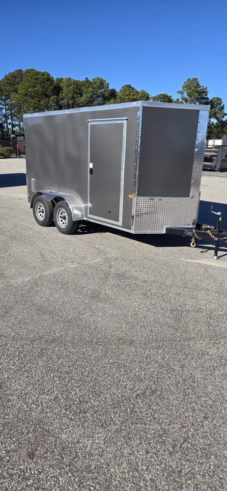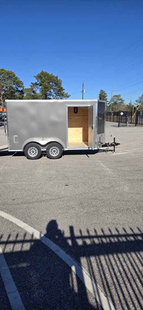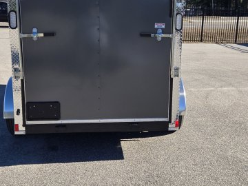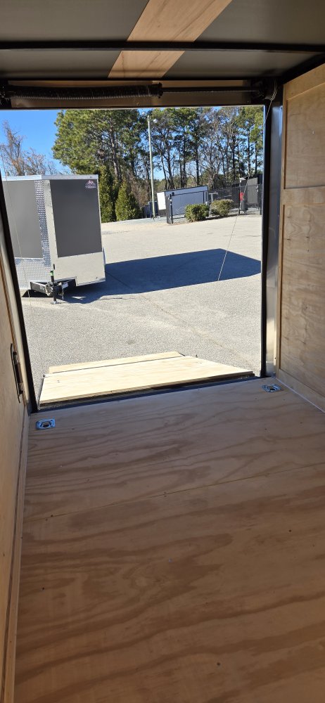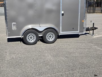 This heavy-duty enclosed trailer is built to last with a robust 3" steel tube main frame and 24" on-center spacing for the roof bows, and on floor cross members, 16” on sidewalls, ensuring superior structural integrity. It features a durable ¾" plywood floor and 3/8" plywood walls, plus a Therma Cool ceiling liner for climate management. Access is easy via a 36" side door with a flush lock and an ATP covered stepwell, illuminated by a 12-volt LED dome light. For secure transport, it includes electric brakes on both axles, a 7-way Bargman plug, and E-Z Lube hubs on its silver mod wheels. The V-nose design, 24" stone guard, and aluminum fenders add to its functionality and protection. Inside, you'll find 4 floor mount D-rings to secure your cargo, and a no-show beavertail for smooth loading. All lighting is LED for reliability.