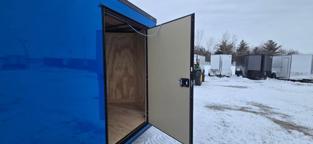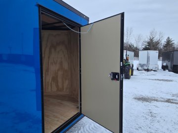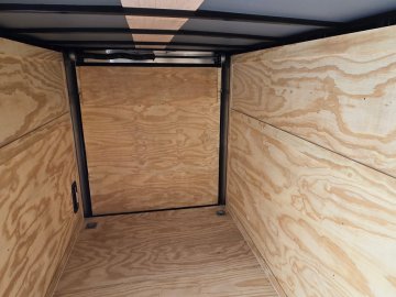 This robust trailer is built with a 4" steel tube main frame and features 24" on-center spacing for the roof bows, and 16” on floor cross members, and sidewalls, ensuring exceptional durability. It boasts a hard-wearing ¾" plywood floor and 3/8" plywood walls, complemented by a Therma Cool ceiling liner. Access is convenient through a 36" side door with a flush lock, illuminated by a 12-volt LED dome light. It's equipped with 3500 lbs. drop leaf spring axles, electric brakes on both axles, and E-Z Lube hubs on silver mod wheels with aluminum fenders. Other key features include a 2 5/16" coupler, 24" stone guard, a sleek V-nose design, and full LED lighting. Inside, you'll find 4 floor mount D-rings to secure your cargo, and it connects easily with a 7-way Bargman plug.