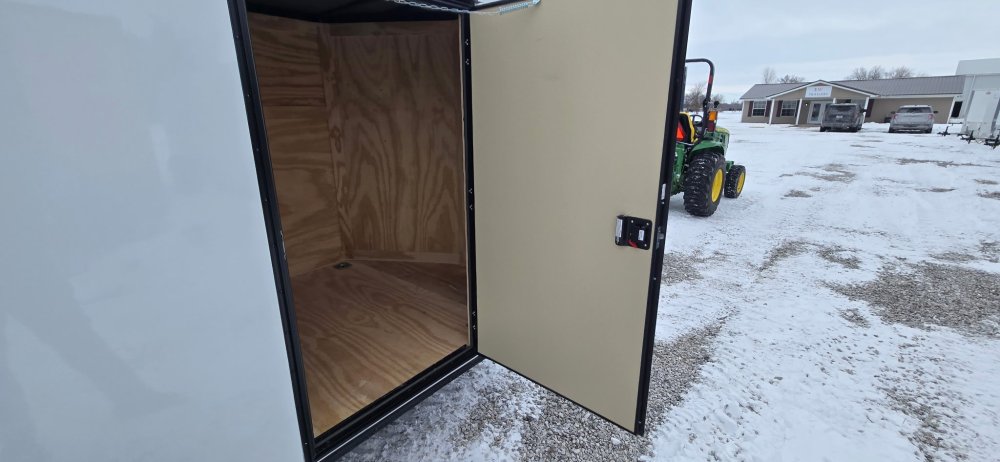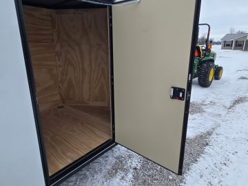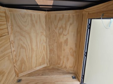 This heavy-duty enclosed trailer is built to last with a robust 3" steel tube main frame and 24" on-center spacing for the roof bows, and on floor cross members, 16” on sidewalls, ensuring superior structural integrity. It features a durable ¾" plywood floor and 3/8" plywood walls, plus a Therma Cool ceiling liner for climate management. Access is easy via a 36" side door with a flush lock and an ATP covered stepwell, illuminated by a 12-volt LED dome light. For secure transport, it includes electric brakes on both axles, a 7-way Bargman plug, and E-Z Lube hubs on its silver mod wheels. The V-nose design, 24" stone guard, and aluminum fenders add to its functionality and protection. Inside, you'll find 4 floor mount D-rings to secure your cargo, and a no-show beavertail for smooth loading. All lighting is LED for reliability.