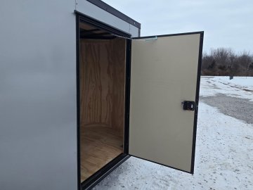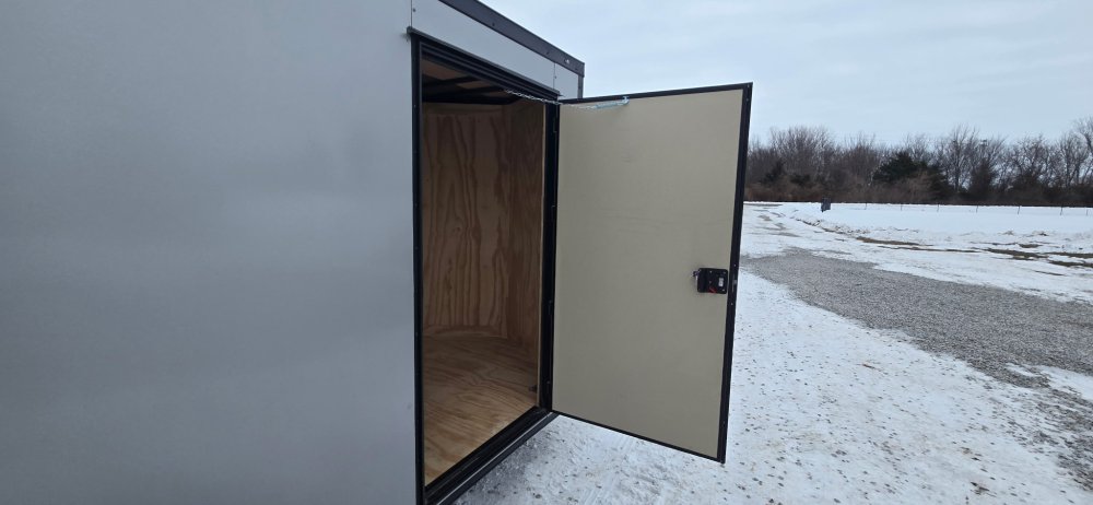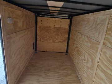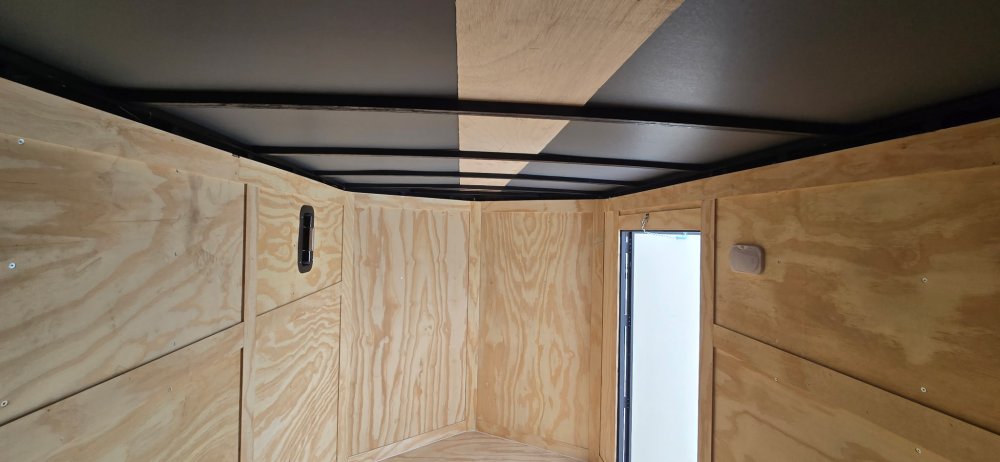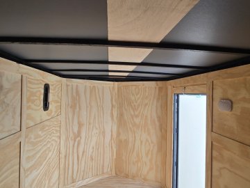 This heavy-duty enclosed trailer is built to last with a robust 3" steel tube main frame and 24" on-center spacing for the roof bows, and on floor cross members, 16” on sidewalls, ensuring superior structural integrity. It features a durable ¾" plywood floor and 3/8" plywood walls, plus a Therma Cool ceiling liner for climate management. Access is easy via a 36" side door with a flush lock and an ATP covered stepwell, illuminated by a 12-volt LED dome light. For secure transport, it includes electric brakes on both axles, a 7-way Bargman plug, and E-Z Lube hubs on its silver mod wheels. The V-nose design, 24" stone guard, and aluminum fenders add to its functionality and protection. Inside, you'll find 4 floor mount D-rings to secure your cargo, and a no-show beavertail for smooth loading. All lighting is LED for reliability.