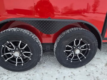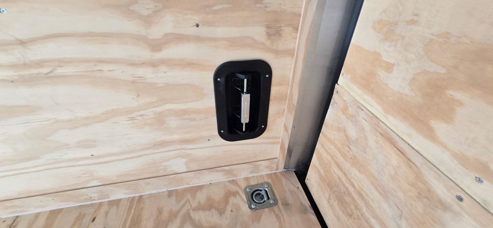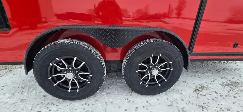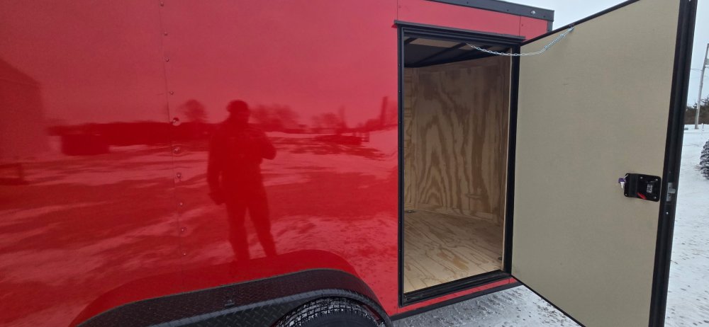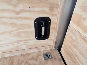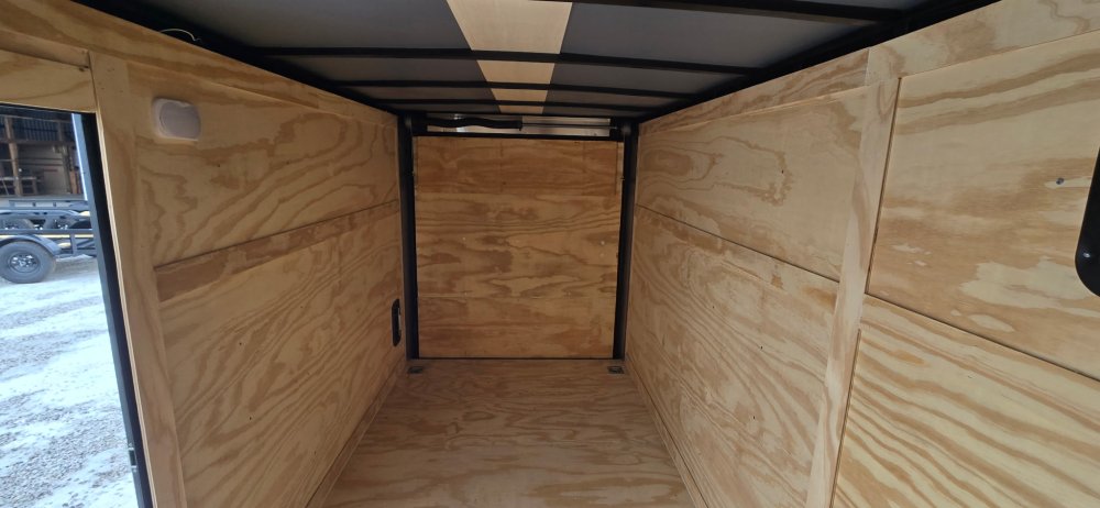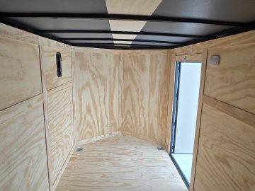 This robust trailer is built with a 4" steel tube main frame and features 24" on-center spacing for the roof bows, and 16” on floor cross members, and sidewalls, ensuring exceptional durability. It boasts a hard-wearing ¾" plywood floor and 3/8" plywood walls, complemented by a Therma Cool ceiling liner. Access is convenient through a 36" side door with a flush lock, illuminated by a 12-volt LED dome light. It's equipped with 3500 lbs. drop leaf spring axles, electric brakes on both axles, and E-Z Lube hubs on silver mod wheels with aluminum fenders. Other key features include a 2 5/16" coupler, 24" stone guard, a sleek V-nose design, and full LED lighting. Inside, you'll find 4 floor mount D-rings to secure your cargo, and it connects easily with a 7-way Bargman plug.