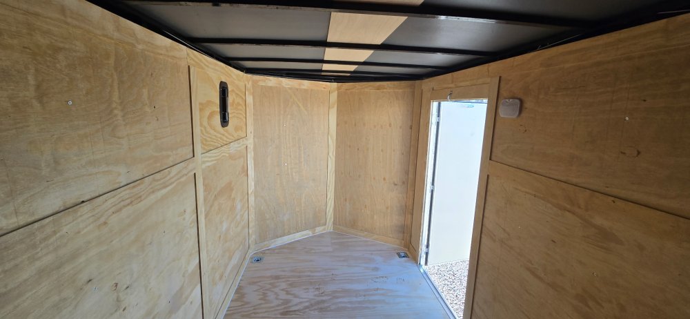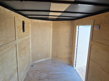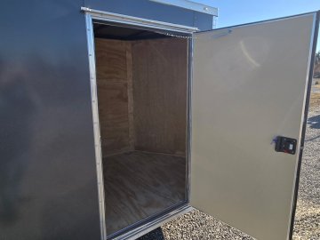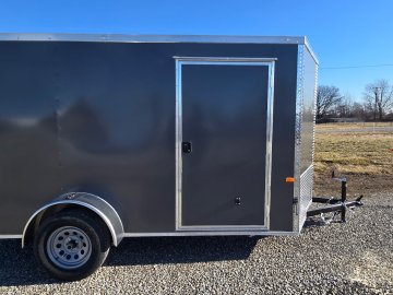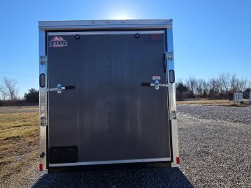 This heavy-duty enclosed trailer is built to last with a robust 3" steel tube main frame and 24" on-center spacing for the roof bows, and on floor cross members, 16” on sidewalls, ensuring superior structural integrity. It features a durable ¾" plywood floor and 3/8" plywood walls, plus a Therma Cool ceiling liner for climate management. Access is easy via a 36" side door with a flush lock and an ATP covered stepwell, illuminated by a 12-volt LED dome light. For secure transport, it includes electric brakes on both axles, a 7-way Bargman plug, and E-Z Lube hubs on its silver mod wheels. The V-nose design, 24" stone guard, and aluminum fenders add to its functionality and protection. Inside, you'll find 4 floor mount D-rings to secure your cargo, and a no-show beavertail for smooth loading. All lighting is LED for reliability.