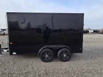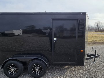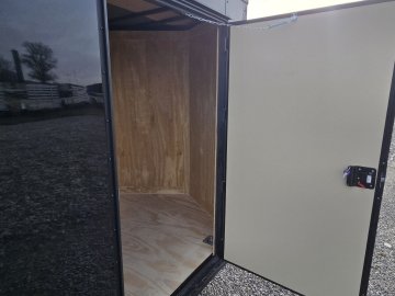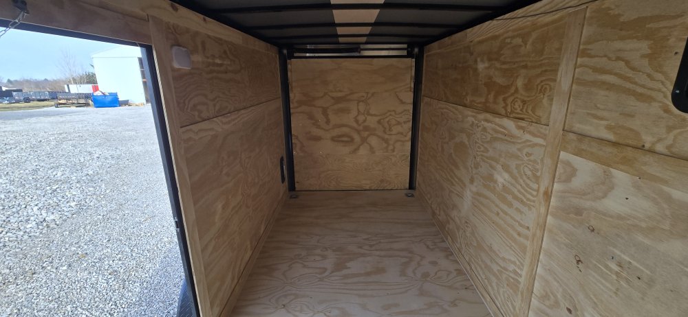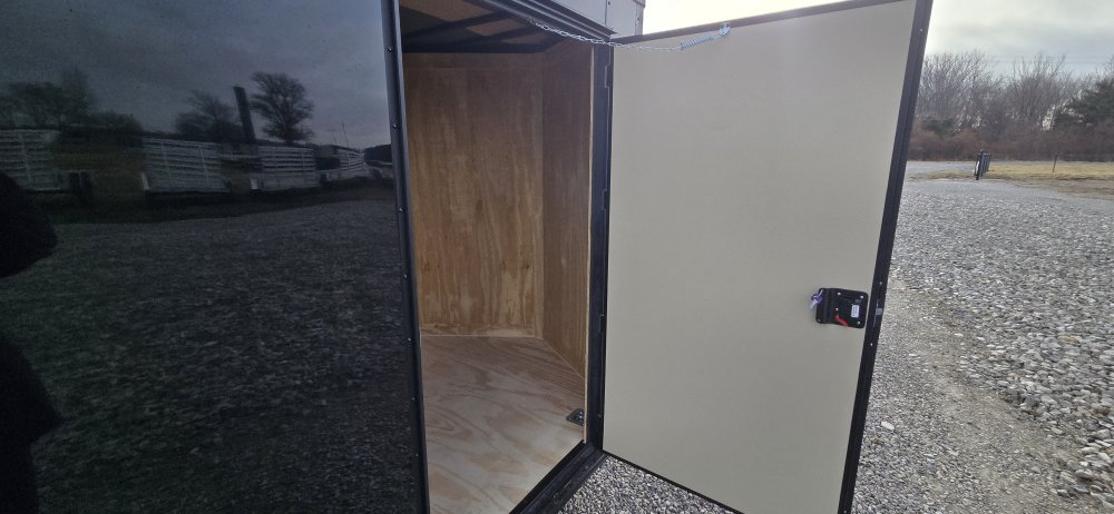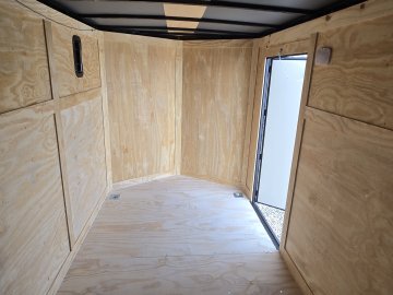This robust trailer is built with a 4" steel tube main frame and features 24" on-center spacing for the roof bows, and 16” on floor cross members, and sidewalls, ensuring exceptional durability. It boasts a hard-wearing ¾" plywood floor and 3/8" plywood walls, complemented by a Therma Cool ceiling liner. Access is convenient through a 36" side door with a flush lock, illuminated by a 12-volt LED dome light. It's equipped with 3500 lbs. drop leaf spring axles, electric brakes on both axles, and E-Z Lube hubs on silver mod wheels with aluminum fenders. Other key features include a 2 5/16" coupler, 24" stone guard, a sleek V-nose design, and full LED lighting. Inside, you'll find 4 floor mount D-rings to secure your cargo, and it connects easily with a 7-way Bargman plug.