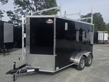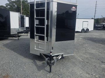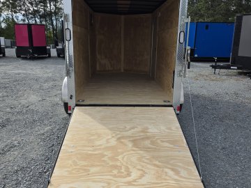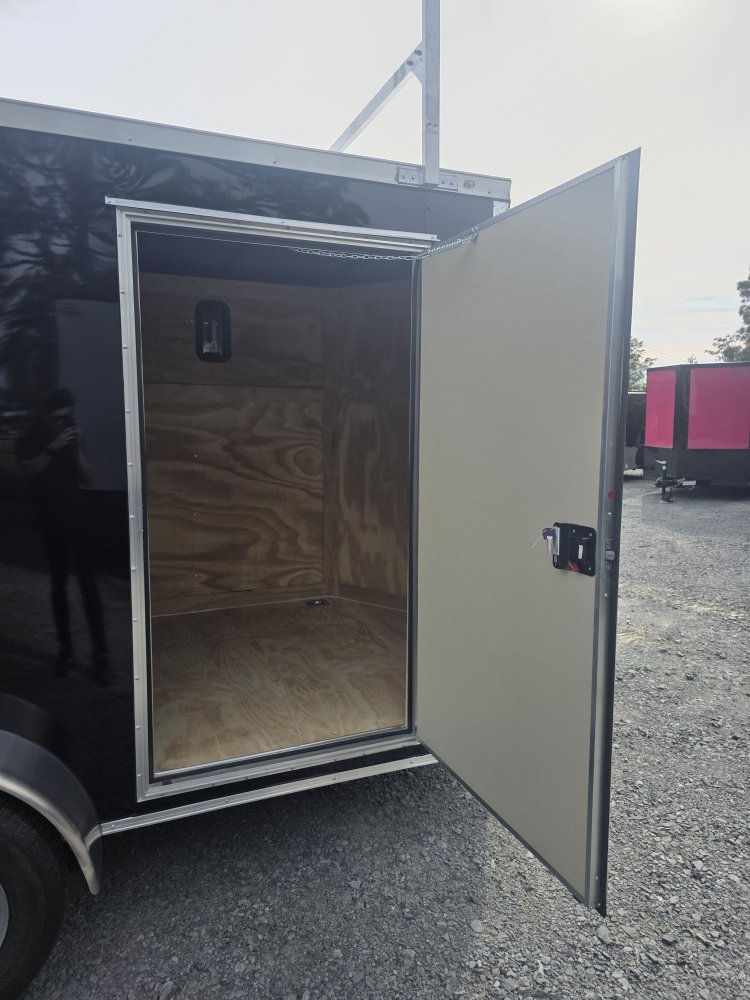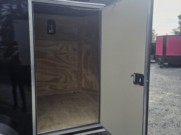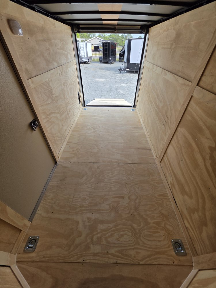 This robust trailer is built with a 4" steel tube main frame and features 24" on-center spacing for the roof bows, and 16” on floor cross members, and sidewalls, ensuring exceptional durability. It boasts a hard-wearing ¾" plywood floor and 3/8" plywood walls, complemented by a Therma Cool ceiling liner. Access is convenient through a 36" side door with a flush lock, illuminated by a 12-volt LED dome light. It's equipped with 3500 lbs. drop leaf spring axles, electric brakes on both axles, and E-Z Lube hubs on silver mod wheels with aluminum fenders. Other key features include a 2 5/16" coupler, 24" stone guard, a sleek V-nose design, and full LED lighting. Inside, you'll find 4 floor mount D-rings to secure your cargo, and it connects easily with a 7-way Bargman plug.