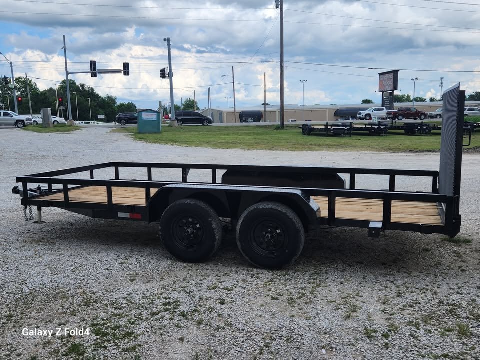 76"x 16' Utility Trailer w/4' Spring Assisted gate 2-3500lb EZ lube axle, Brakes on Front Axle, #1 Treated Floor, LED Lights