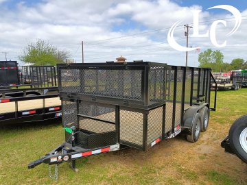 1 - Brake, 2" Bd Hitch, 2k Jack, 3.5k Dexter Axles, 3X2 Angle top, 4ft Expanded Metal (3/4 - #9), 4ft Ramp Gate (1- 1/2 - #9 Raised Expanded Metal), 6ply Radial Tires (ST205X75R-15 / 5ON5/ PSI 50), Blower Cage 2ft tall x 2ft long x 76" wide, Silver Rims, Spare Mount, Straight Smooth Fender, Tongue Box, Treated Lumber, Weed eater racks