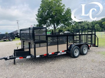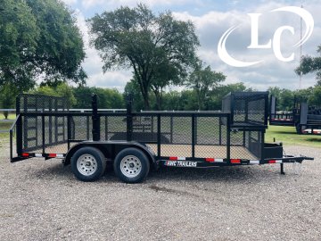 1 - Brake, 2" Bd Hitch, 2k Jack, 3.5k Dexter Axles, 3X2 Angle top, 4ft Ramp Gate (1- 1/2 - #9 Raised Expanded Metal), Blower Cage 2ft tall x 2ft long x 76" wide, Led Lights, Spare Mount, Spare Tire, Treated Lumber, Trimmer Rack