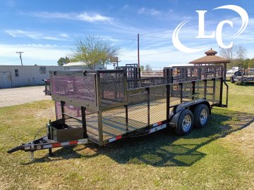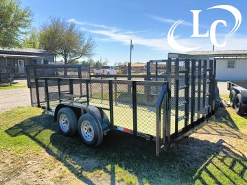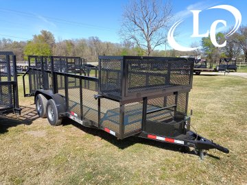 1 - Brake, 2" Bd Hitch, 2k Jack, 3.5k Dexter Axles, 3ft Expanded Metal (3/4 - #9), 3X2 Angle top, 4ft Ramp Gate (1- 1/2 - #9 Raised Expanded Metal), 6ply Radial Tires (ST205X75R-15 / 5ON5/ PSI 50), Blower Cage 2ft tall x 2ft long x 76" wide, Led Lights, Spare Mount, Straight Smooth Fender, Tongue Box, Treated Lumber, Trimmer Rack, Weed eater racks