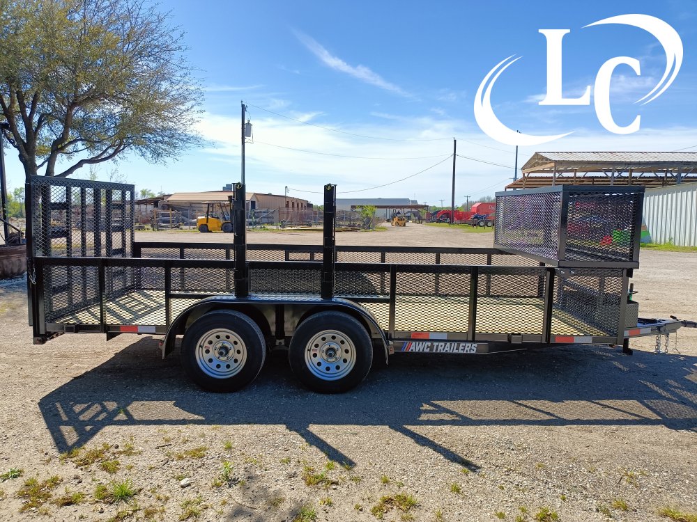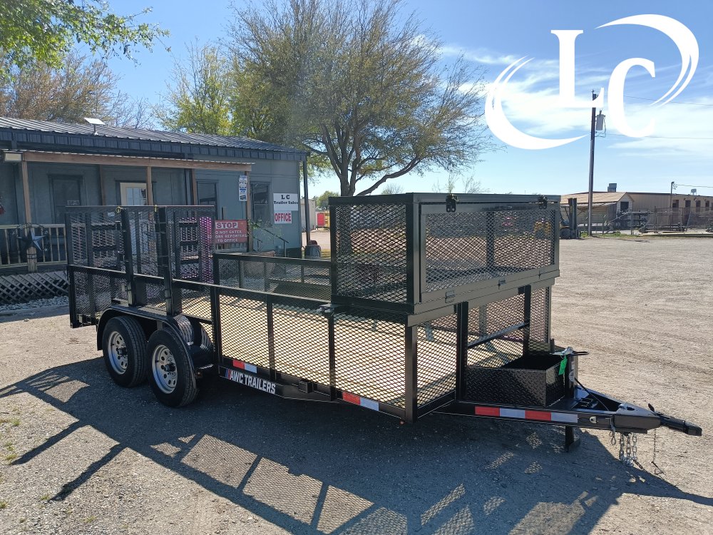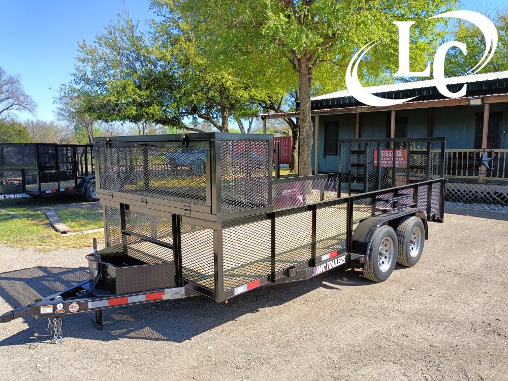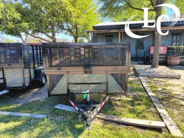 1 - Brake, 2" Bd Hitch, 2ft Expanded Metal (3/4 - #9), 2k Jack, 3.5k Dexter Axles, 3X2 Angle top, 4ft Ramp Gate (1- 1/2 - #9 Raised Expanded Metal), 6ply Radial Tires (ST205X75R-15 / 5ON5/ PSI 50), Blower Cage 2ft tall x 2ft long x 76" wide, Led Lights, Silver Rims, Spare Mount, Straight Smooth Fender, Tongue Box, Treated Lumber, Weed eater racks
