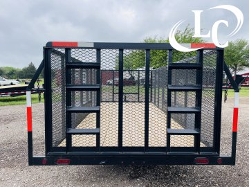 1 - Brake, 2" Bd Hitch, 2k Jack, 4ft Expanded Metal (3/4 - #9), 4ft Ramp Gate (1- 1/2 - #9 Raised Expanded Metal), 6ply Radial Tires (ST205X75R-15 / 5ON5/ PSI 50), Spare Mount, Treated Lumber
