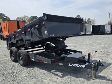 The Lamar DM771225 is a rugged, mid-sized dump trailer that strikes a sweet spot for both contractors and serious homeowners who need to haul heavy without the bulk of a massive commercial rig. It sits on a 77-inch wide by 12-foot long bed with a 9,990 lb GVWR, giving you a solid payload capacity of over 7,300 lbs—plenty of muscle for gravel, mulch, or even a skid steer. It’s built on a sturdy 5-inch channel frame and usually comes equipped with a scissor hoist system, which provides a much more stable and powerful lift than single-piston setups. With standard features like slide-in ramps, a tarp kit, and a low-profile deck that makes loading