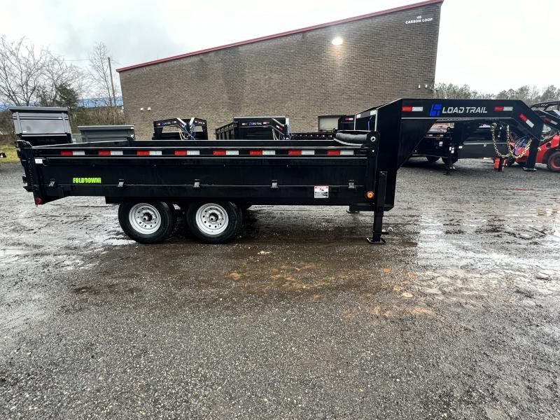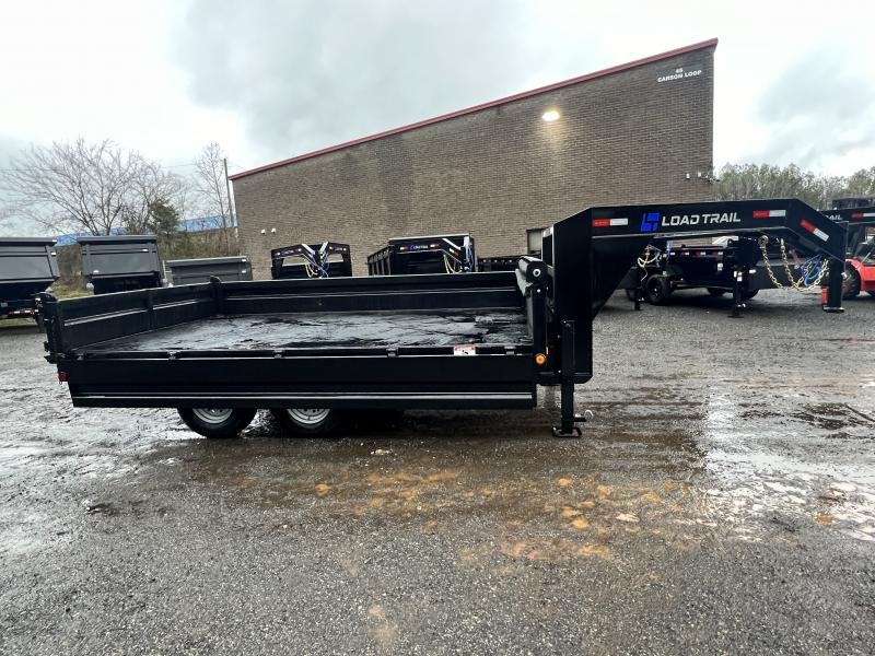 New 2024 Load Trail 8ft x 14ft 14k Tandem Axle Gooseneck Dump w/1.5ft walls & 2-Way Spreader Gate (Black) High Quality Trailer Black (w/ Primer) 2 - 7000-Lb Standard Spring Suspension w/EZ Lube Axle(s) (10PR Tires) Electric Forward Self-Adjusting Brakes on 2 Axles Steel Construction w/16-in Crossmembers (10-ga Steel Floor) 2 - Spring Loaded Drop Leg 10000 lb (1-Speed) Jacks Deck Over the Wheels LED Exterior Lighting Pkg (w/Cold Weather Harness) 2-Way Spreader Gate Rear Slide-In Ramps (7-ft x 16-in) Scissor Hoist w/HD KTI Pump Mesh Tarp Kit w/Pull Bar Trickle Battery Charger (5 Amp) No haggle, no BS, no hidden fees, no nickel and diming. Call 770-608-6882, or visit www.georgiatraileroutlet.com Georgia Trailer Outlet 45 Carson Loop NW Cartersville, GA 30121 Contact us for warranty information.