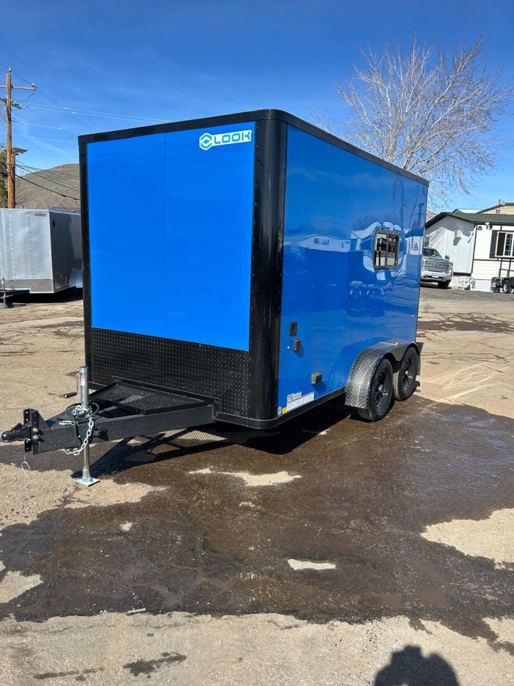 The 7x12 Look Element SE Bullnose enclosed trailer is a compact, custom-built cargo trailer designed for secure hauling and clean professional appearance. Its rounded bullnose front improves towing airflow while the premium composite exterior gives a modern, durable finish ideal for business or personal transport across Northern Nevada.