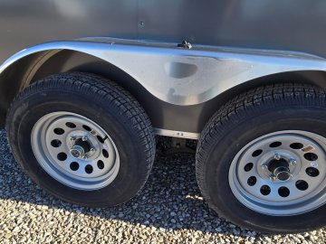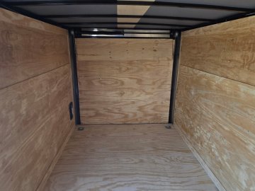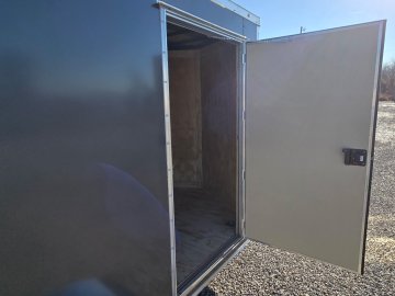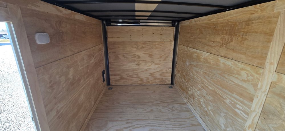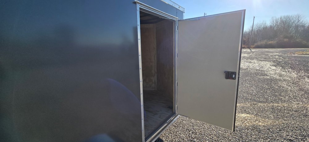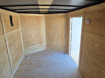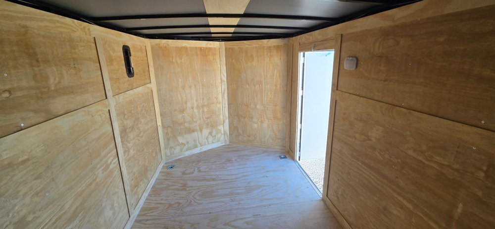 This heavy-duty enclosed trailer is built with a robust 4" steel tube main frame and features 24" on-center spacing for the roof bows, and 16” on floor cross members, and sidewalls for superior strength. It includes a durable ¾" plywood floor and 3/8" plywood walls, along with a Therma Cool ceiling liner for climate control. Access is convenient through a 36" side door with a flush lock, illuminated by a 12-volt LED dome light. It rides smoothly on 3500 lbs. drop leaf spring axles equipped with electric brakes on both axles and E-Z Lube hubs, all on silver mod wheels with aluminum fenders. Additional features include a 2 5/16" coupler, 24" stone guard, a streamlined V-nose design, and full LED lighting. Inside, 4 floor mount D-rings help secure your cargo, and it connects easily with a 7-way Bargman plug.