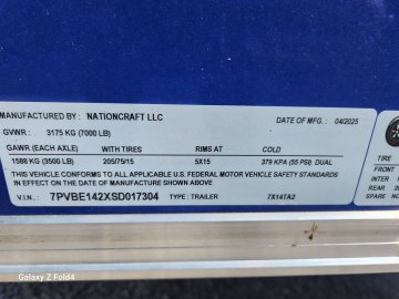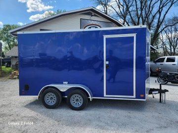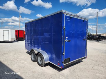 2025 7x14 7K Nation Craft Enclosed 2-3500 lb EZ Lube Axles, Brakes on Both Axles, Deep Blue, Ramp Door