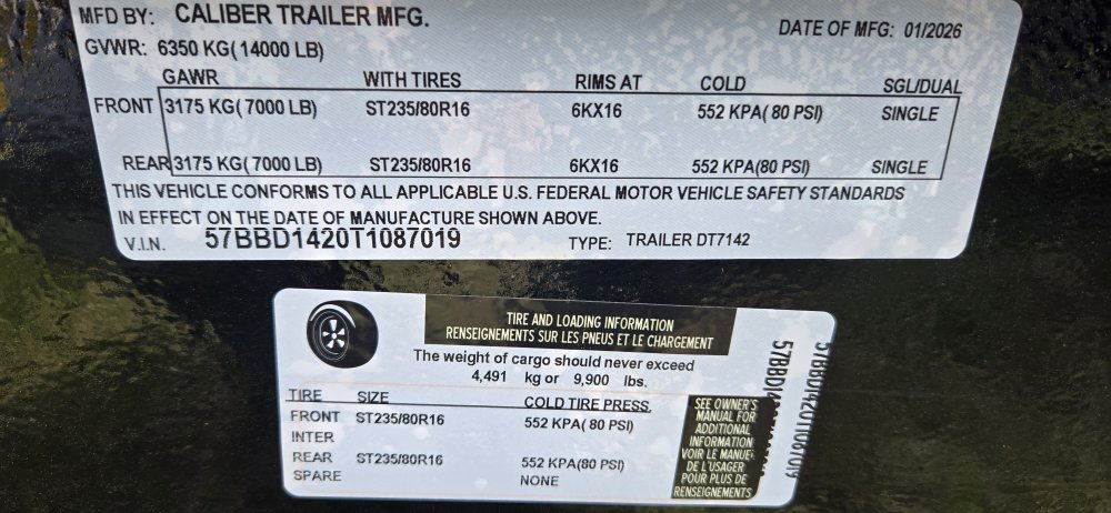 7'x14' Caliber DT7142 Dump