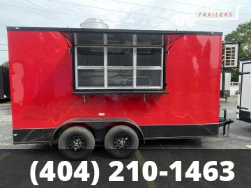 7X14 CONCESSION TRAILER RED BLACKOUT WITH ELITE PCKG AND 8' EXUAST HOOD