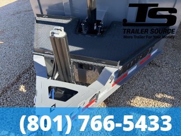 The front tool box is integrated into the tongue in a V-shape, offering more than just battery protection. It houses the hydraulic pump and battery but is designed with extra space for chains, straps, and tools. The lid is constructed from heavy-duty steel (often diamond plate) to withstand abuse, and many 2026 configurations include a solar pulse charger here to keep the battery topped off.