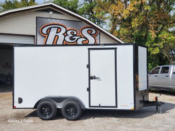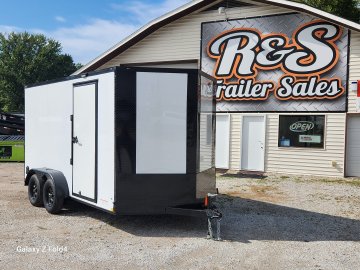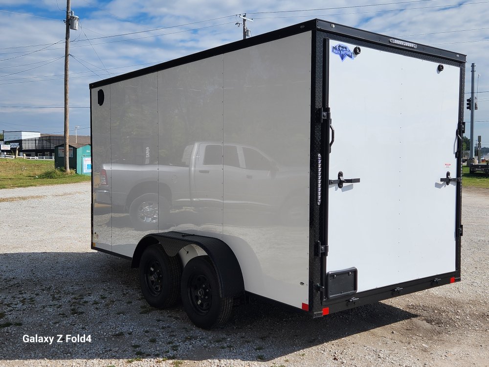 7x14 Diamond Cargo Enclosed Trailer .080 White w/ Blackout 2-3500 lb EZ Lube Axles with Brakes, 7' Interior Height. Ramp Door