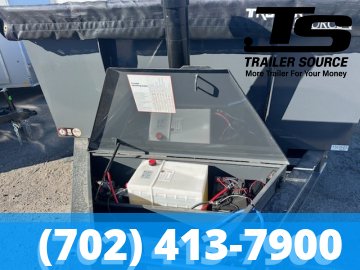 The hydraulic system is powered by a 12V deep cycle battery housed in a locking front toolbox. It includes a 5-Amp 110V trickle charger as standard, allowing you to simply plug the trailer into a wall outlet at the end of the day to keep the battery topped off for the next morning.