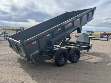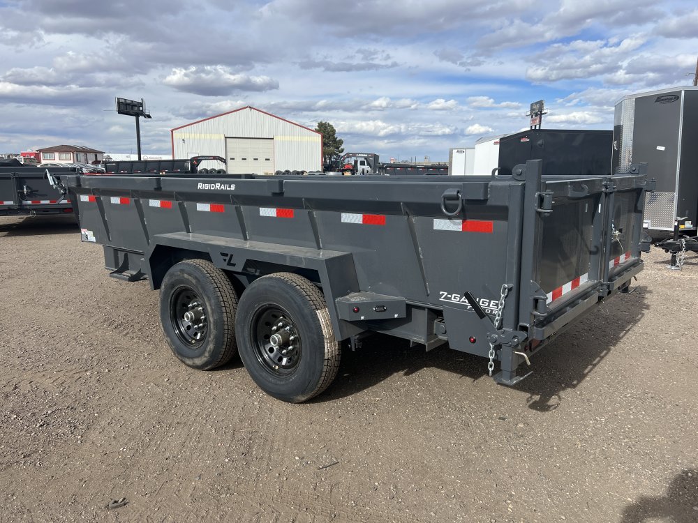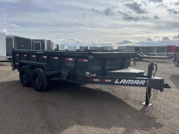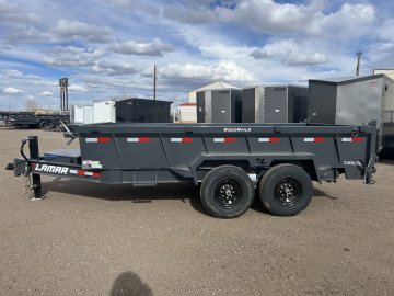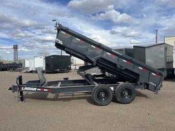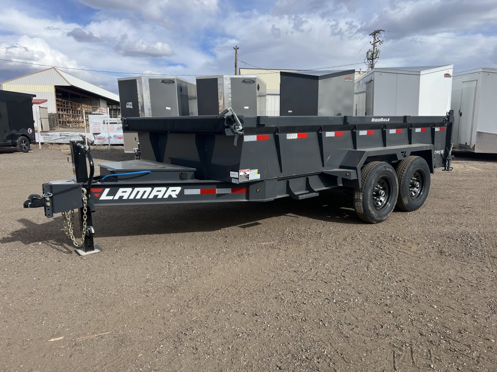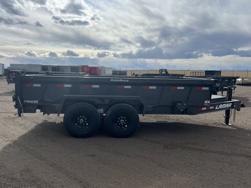 New 2026 Lamar 7ft x 14ft 14k Tandem Axle Low Pro Bumper Pull Dump w/2ft walls & Scissor Hoist w/HD KTI Pump & 5 Amp Battery Charger (Lamar Gray)