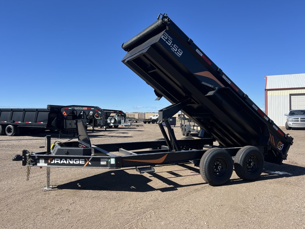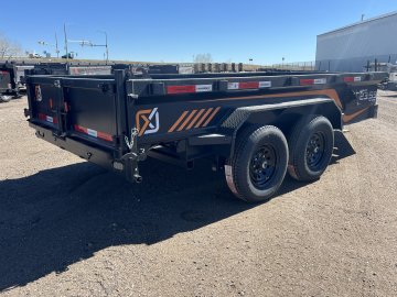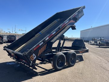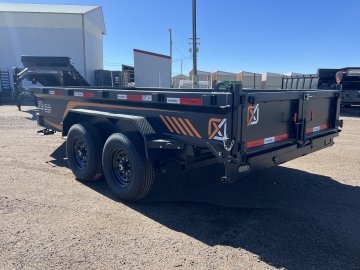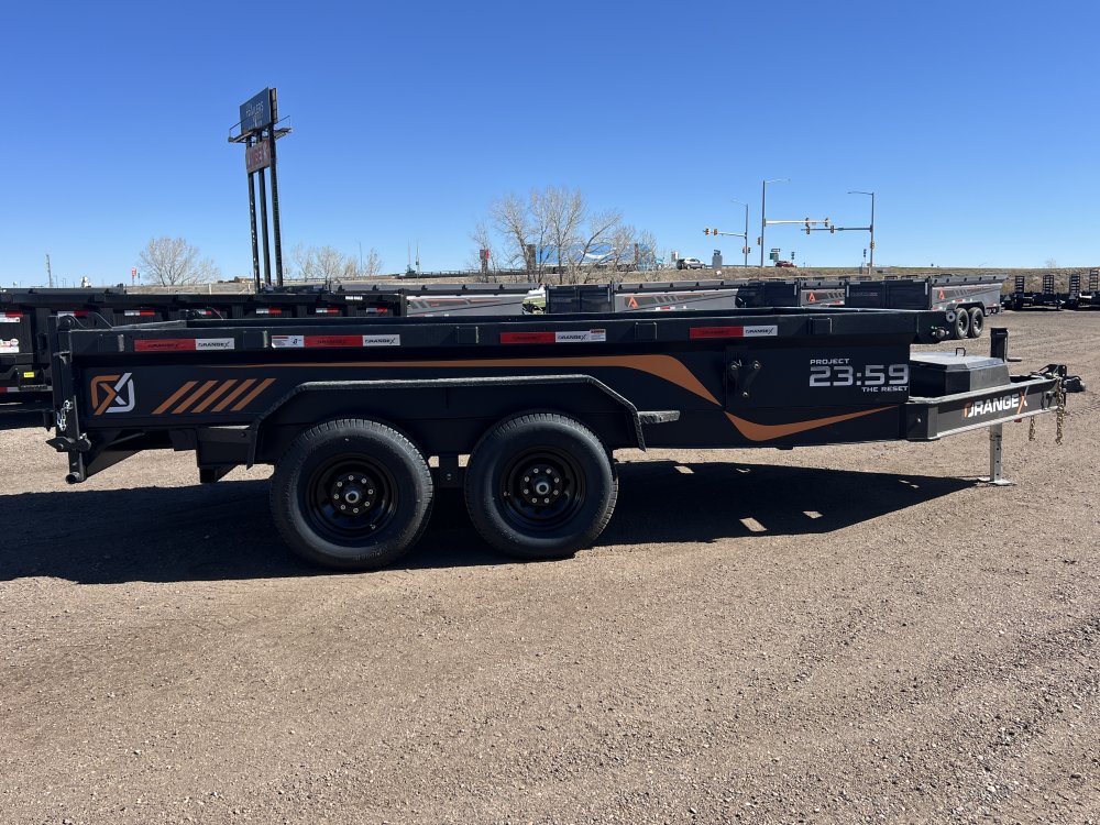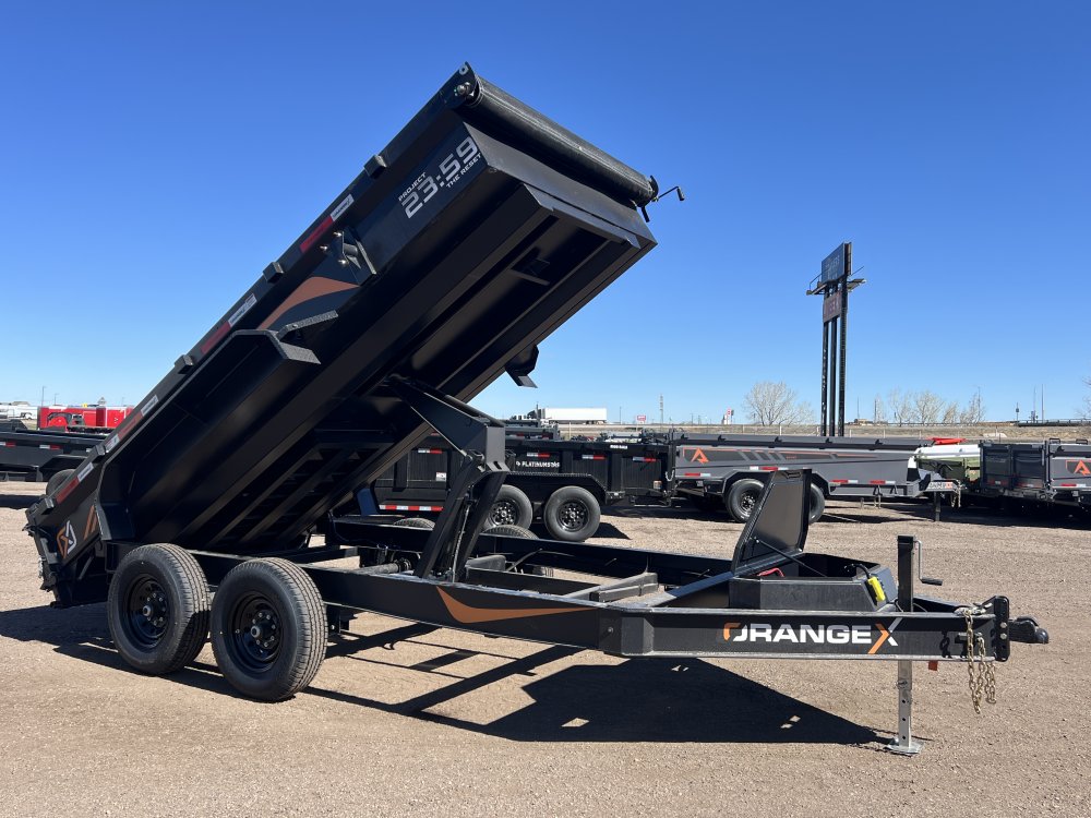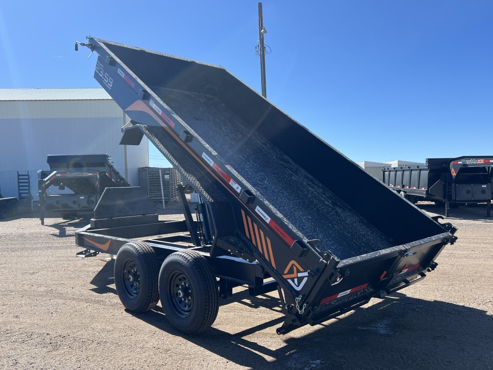New 2026 RawMaxx 7ft x 14ft 14k Tandem Axle Orange X Bumper Pull Dump w/1.6ft walls & Scissor Hoist w/HD KTI Pump & 5 Amp Battery Charger (Black)