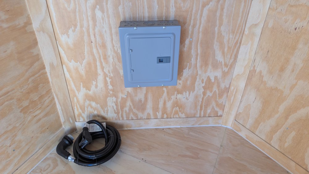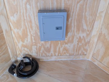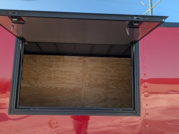 This Concession Trailer Package is designed for efficient roadside sales and service, featuring a practical layout for easy operation. Access is managed through a full-sized 36" x 78" rear side door for seamless entry and exit. The main serving area includes a 3' x 5' concession door positioned 36" above the finished floor and on the center of the passenger side, perfect for customer interaction. The included electrical package ensures you're ready to operate, providing power via a 60 AMP box with a 50 AMP motorbase and a 50 AMP twist-lock cord. Interior illumination is provided by two bright 12" x 12" LED 100-volt lights, controlled by a single switch, and complemented by two conveniently placed receptacles for your essential equipment.