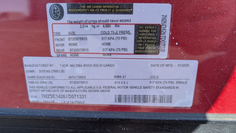 7'x14' Rock Solid Cargo 7 x 14 TA Concession