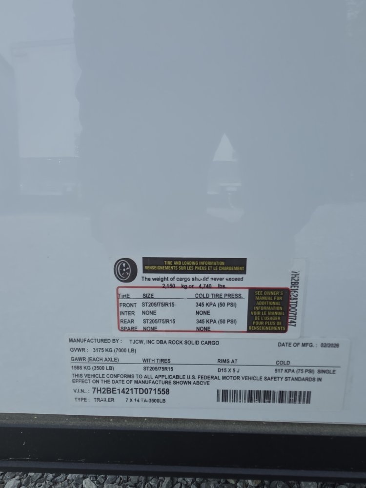 7'x14' Rock Solid Cargo 7 x 14 TA Concession