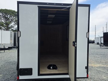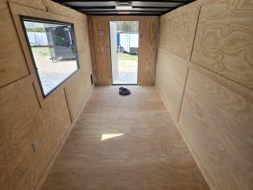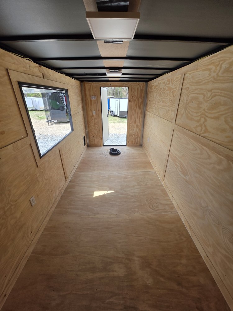 This heavy-duty enclosed trailer is built with a robust 4" steel tube main frame and features 24" on-center spacing for the roof bows, and 16” on floor cross members, and sidewalls for superior strength. It includes a durable ¾" plywood floor and 3/8" plywood walls, along with a Therma Cool ceiling liner for climate control. Access is convenient through a 36" side door with a flush lock, illuminated by a 12-volt LED dome light. It rides smoothly on 3500 lbs. drop leaf spring axles equipped with electric brakes on both axles and E-Z Lube hubs, all on silver mod