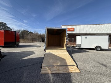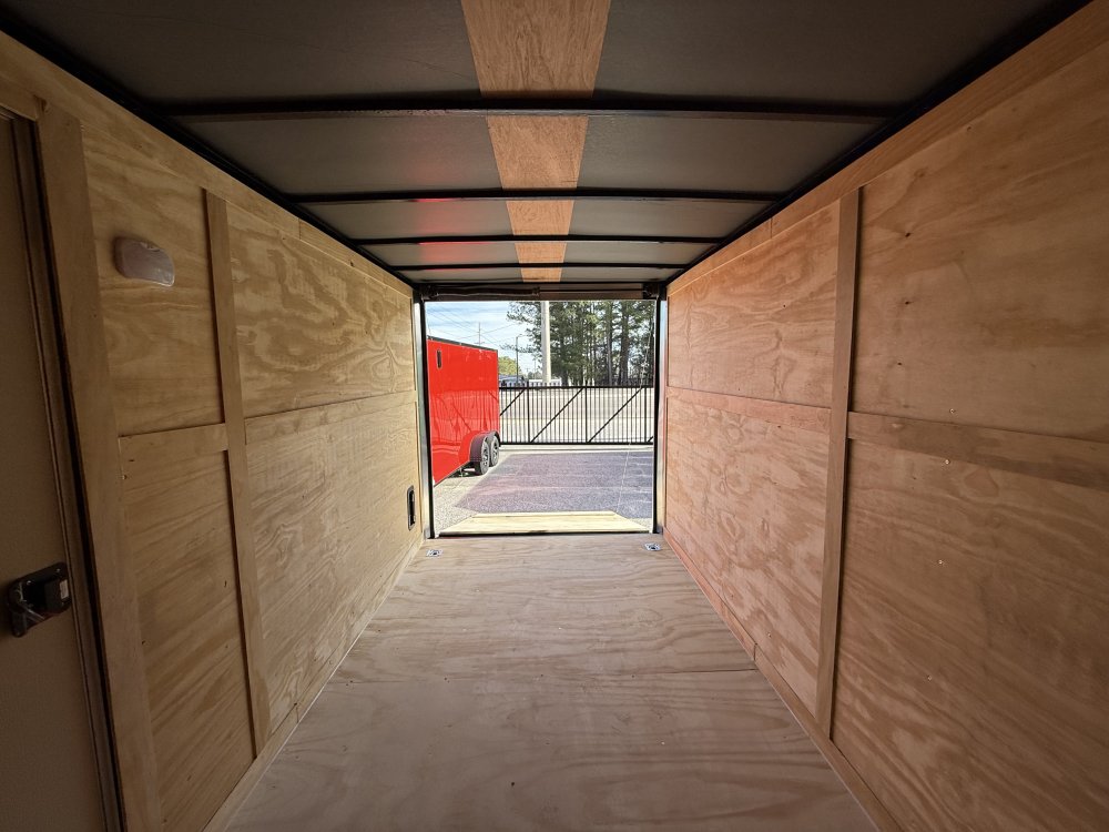This heavy-duty enclosed trailer is built with a robust 4" steel tube main frame and features 24" on-center spacing for the roof bows, and 16” on floor cross members, and sidewalls for superior strength. It includes a durable ¾" plywood floor and 3/8" plywood walls, along with a Therma Cool ceiling liner for climate control. Access is convenient through a 36" side door with a flush lock, illuminated by a 12-volt LED dome light. It rides smoothly on 3500 lbs. drop leaf spring axles equipped with electric brakes on both axles and E-Z Lube hubs, all on silver mod
