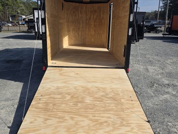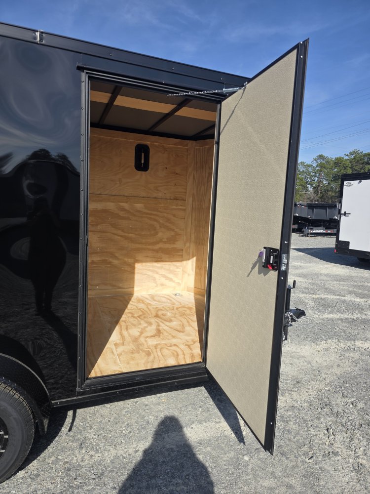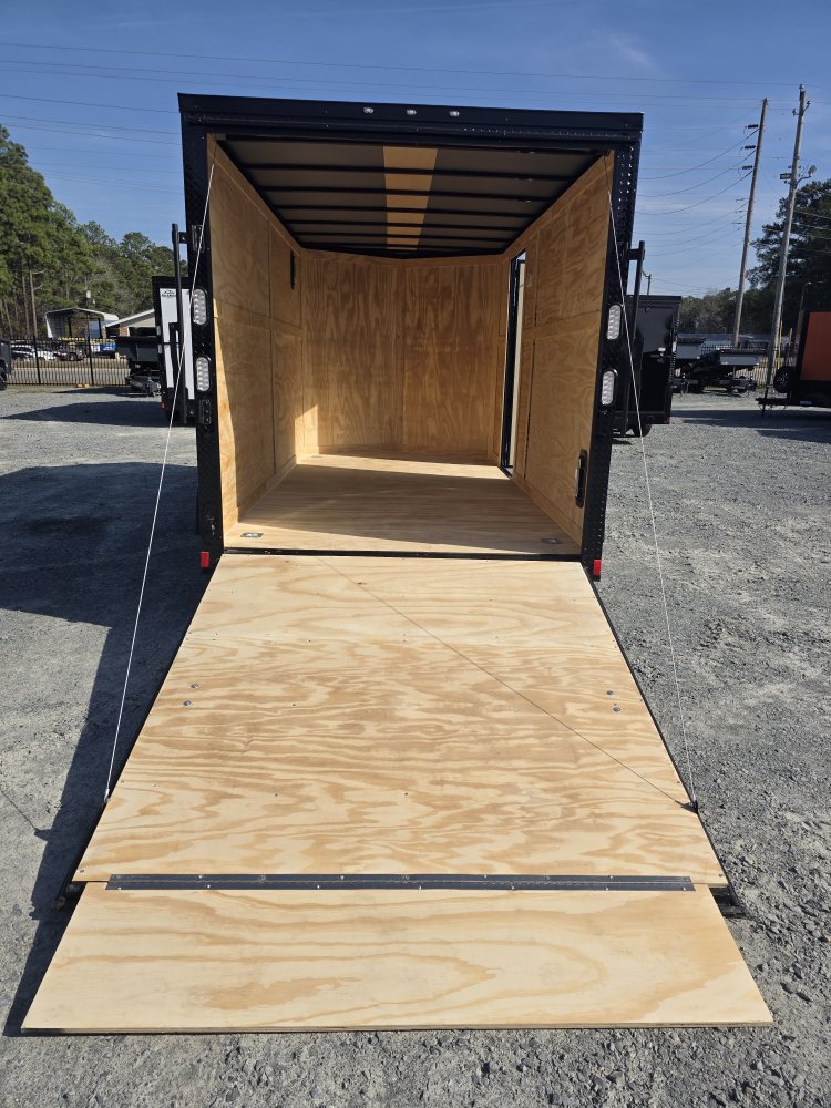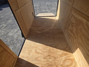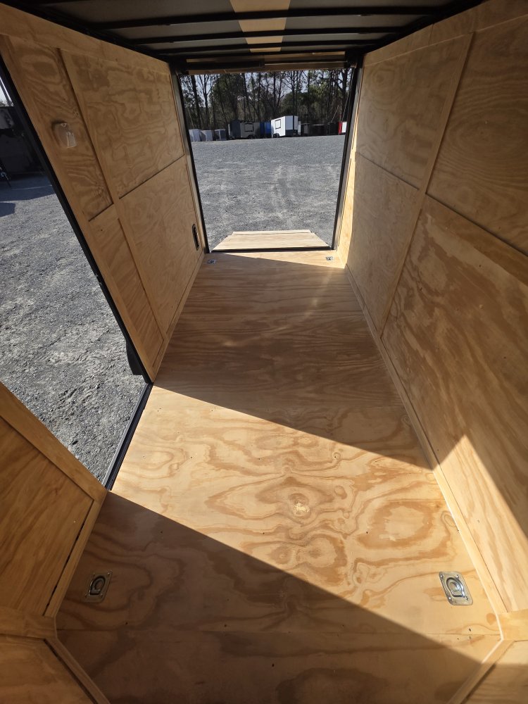 This heavy-duty enclosed trailer is built with a robust 4" steel tube main frame and features 24" on-center spacing for the roof bows, and 16” on floor cross members, and sidewalls for superior strength. It includes a durable ¾" plywood floor and 3/8" plywood walls, along with a Therma Cool ceiling liner for climate control. Access is convenient through a 36" side door with a flush lock, illuminated by a 12-volt LED dome light. It rides smoothly on 3500 lbs. drop leaf spring axles equipped with electric brakes on both axles and E-Z Lube hubs, all on silver mod wheels with aluminum fenders. Additional features include a 2 5/16" coupler, 24" stoneguard,a streamlined V-nose design, and full LED lighting. Inside, 4 floor mount D-rings help secure your cargo, and it connects easily with a 7-way Bargman plug.