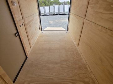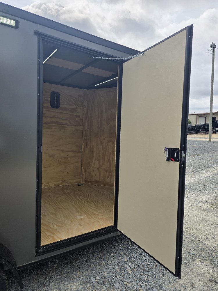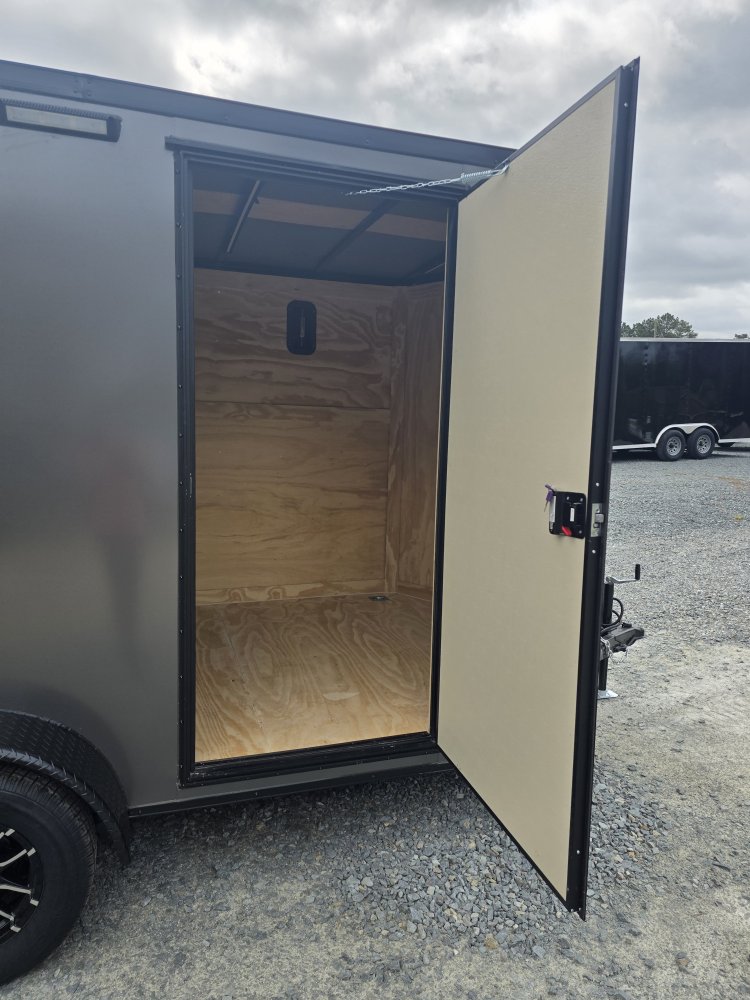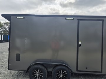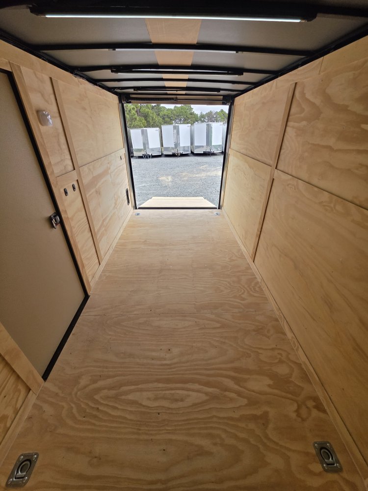 This heavy-duty enclosed trailer is built with a robust 4" steel tube main frame and features 24" on-center spacing for the roof bows, and 16” on floor cross members, and sidewalls for superior strength. It includes a durable ¾" plywood floor and 3/8" plywood walls, along with a Therma Cool ceiling liner for climate control. Access is convenient through a 36" side door with a flush lock, illuminated by a 12-volt LED dome light. It rides smoothly on 3500 lbs. drop leaf spring axles equipped with electric brakes on both axles and E-Z Lube hubs, all on silver mod wheels with aluminum fenders. Additional features include a 2 5/16" coupler, 24" stoneguard,a streamlined V-nose design, and full LED lighting. Inside, 4 floor mount D-rings help secure your cargo, and it connects easily with a 7-way Bargman plug