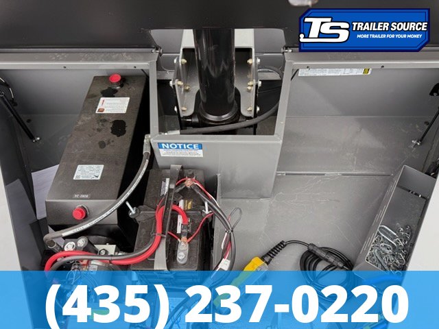 The front tool box is integrated into the tongue in a V-shape, offering more than just battery protection. It houses the hydraulic pump and battery but is designed with extra space for chains, straps, and tools. The lid is constructed from heavy-duty steel (often diamond plate) to withstand abuse, and many 2026 configurations include a solar pulse charger here to keep the battery topped off.