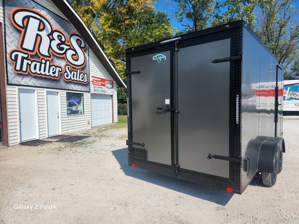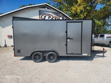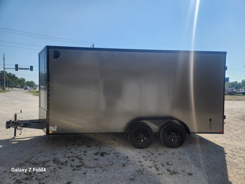 7x16 Diamond Cargo Enclosed Trailer .080 Charcoal Grey w/ Blackout 2-3500 lb EZ Lube Axles with Brakes, 7' Interior Height. 60"Triple Tube tongue.Rear Swing Doors