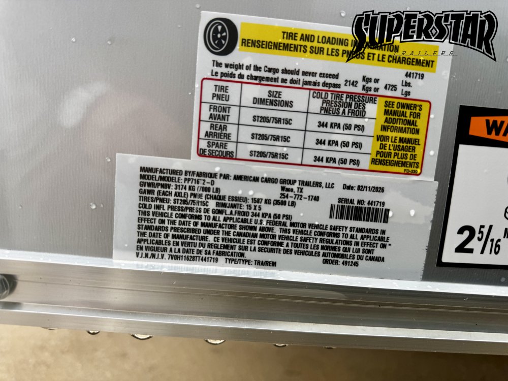 2 5/16" Coupler, 3/4" Plywood Flooring, 3/8" Plywood Walls, 7 Way RV Style Plug, BLACK OUT PKG, Brake-Away, Dexter Axles, LED Exterior Lights, One-Piece Aluminum Roof, Ramp Door, Side Door