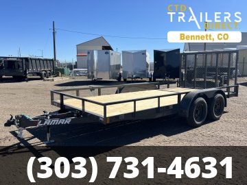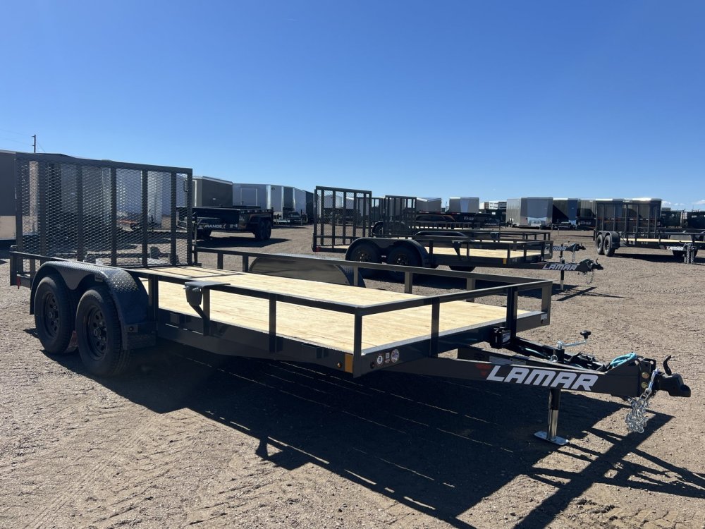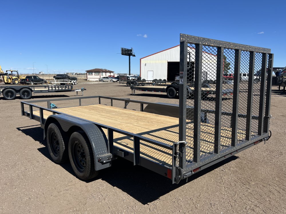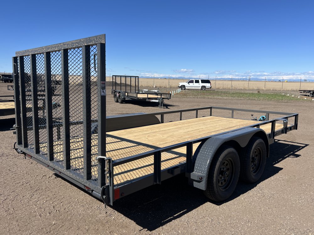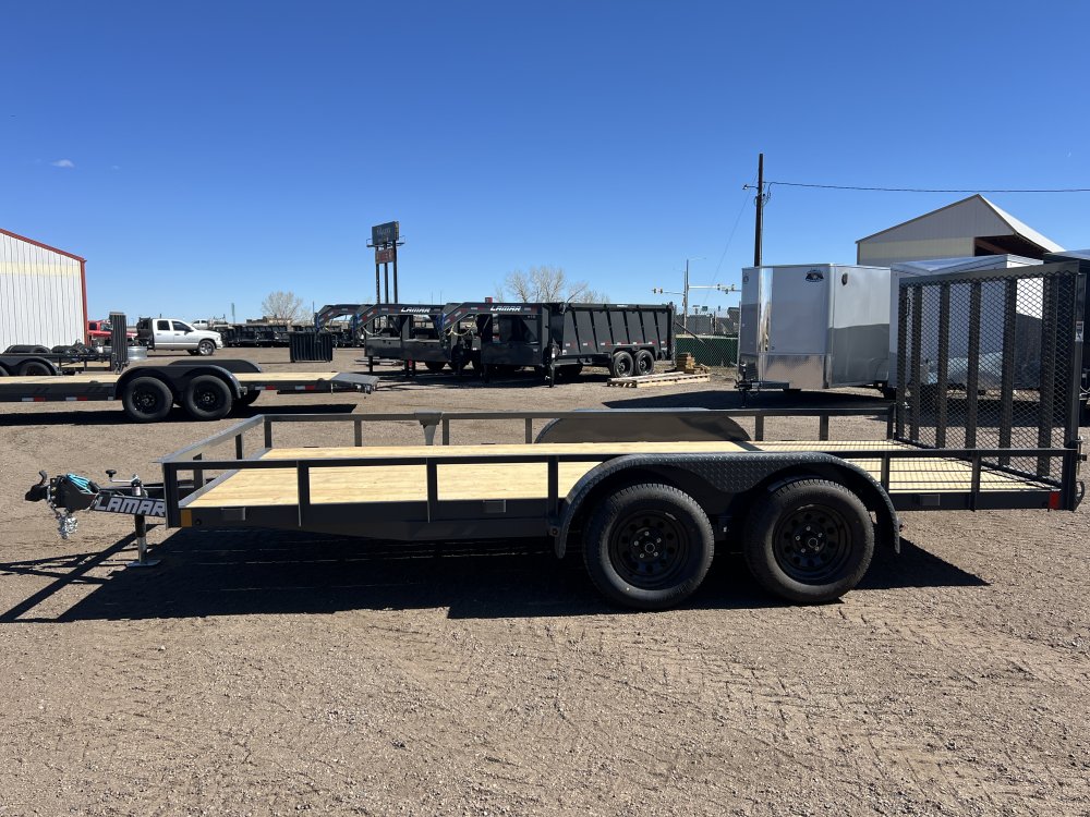 New 2026 Lamar 7ft x 16ft 7k Tandem Axle Bumper Pull Utility & Mesh Ramp Gate [4-ft] (Lamar Gray)
